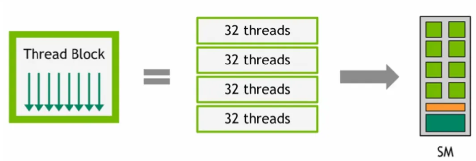 - Thread blocks are divided into warps of 32 threads (warp size) each