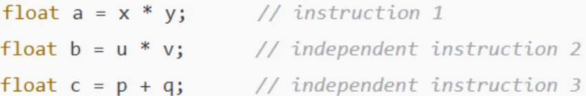 - Increase instruction-level parallelism: Have more independent instructions (don’t depend on each other) per thread