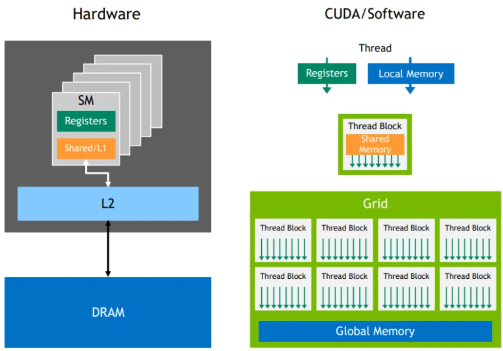 - Shared Memory: Memory shared by all threads in the same block.